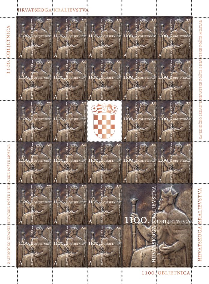 Hrvatska pošta stavit će u optjecaj u petak, 23. svibnja 2025.. novu prigodnu poštansku marku tiskanu u povodu 1100. obljetnice Hrvatskoga Kraljevstva. Marka s motivom brončanog reljefa s likom kralja Tomislava zajedničko je izdanje Hrvatske pošte i Hrvatske pošte Mostar, a na inicijativu Družbe „Braća Hrvatskoga Zmaja“. Autor marke je Tomislav Vlainić, dizajner iz Splita, dok je autor predloška Frane Cota, hrvatski kipar i arhitekt. Izdanje je označeno slovnom oznakom A što odgovara iznosima poštarina za pismo mase do 50 g u unutarnjem prometu te za dopisnicu/razglednicu u unutarnjem prometu. Marka, čija naklada iznosi 50.000 primjeraka, izdana je u hrvatskom arku s 25 maraka i pet privjesaka u 30 polja.