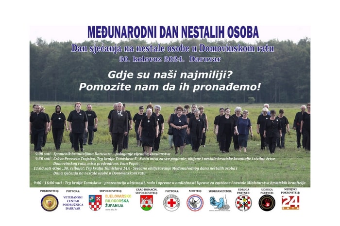 Ove godine središnji skup obilježavanja Međunarodnog dana nestalih i Dana sjećanja na nestale osobe u Domovinskom ratu održat će se u Daruvaru.