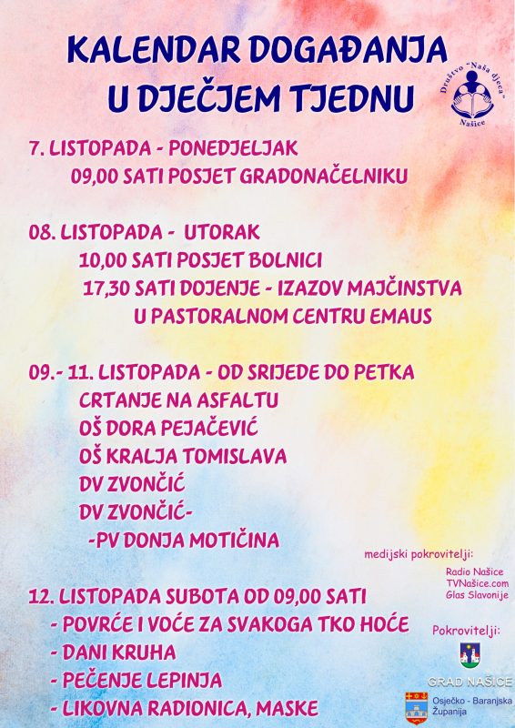 Društvo Naša djeca Našice sljedeći tjedan organizira Dječji tjedan koji će obilježiti brojna zanimljiva događanja.