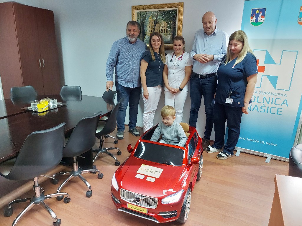 Na odjel pedijatrije Opće županijske bolnice Našice danas je stigla neobična donacija – električni autić kojim će djeca moći ići s odjela na pretrage i zahvate unutar bolnice. Donacija je dio projekta „Vozi s osmijehom” koji je dio glavnog projekta „Pomozimo zajedno” Humanitarne udruge „Fra Mladen Hrkać”. Ravnatelju bolnice Dini Vidi autić je predao predsjednik Udruge Ivan Soldo koji je rekao kako je cilj Udruge da svaki odjel u Hrvatskoj dobije ovakvo vozilo: