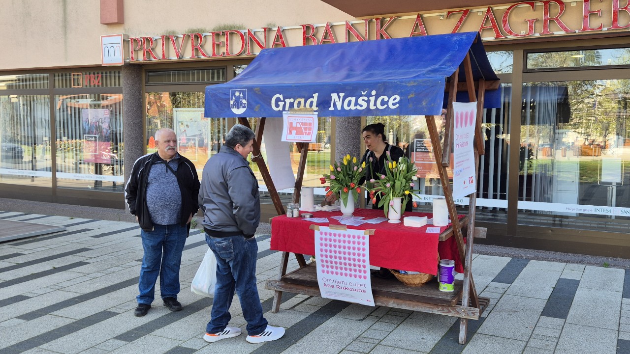 U središtu Našica, kao i na još 50 lokacija diljem Republike Hrvatske, Forum žena SDP-a Hrvatske organizira tradicionalnu humanitarnu akciju „Omiljeni cvijet Ane Rukavine“. Dobrovoljne priloge građana članice Foruma žena SDP-a Našice prikupljale su prodajom cvijeća, Aninih omiljenih tulipana, a kako su istaknule predsjednica Foruma žena SDP-a Našice Jasmina Mitka i predsjednica SDP-a Našice Josipa Knežić, cilj akcije je podupiranje rada Zaklade Ana Rukavina, odnosno razvoja Hrvatskog registra dobrovoljnih darivatelja krvotvornih matičnih stanica, Banke krvi iz pupkovine, promicanje i poticanje mladih stručnjaka u području hematologije i drugih srodnih specijalizacija.