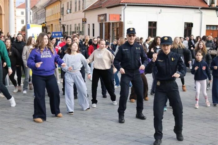 Plesači plesnog studija „Shine“ i policajci, kojima su se u plesu pridružili: