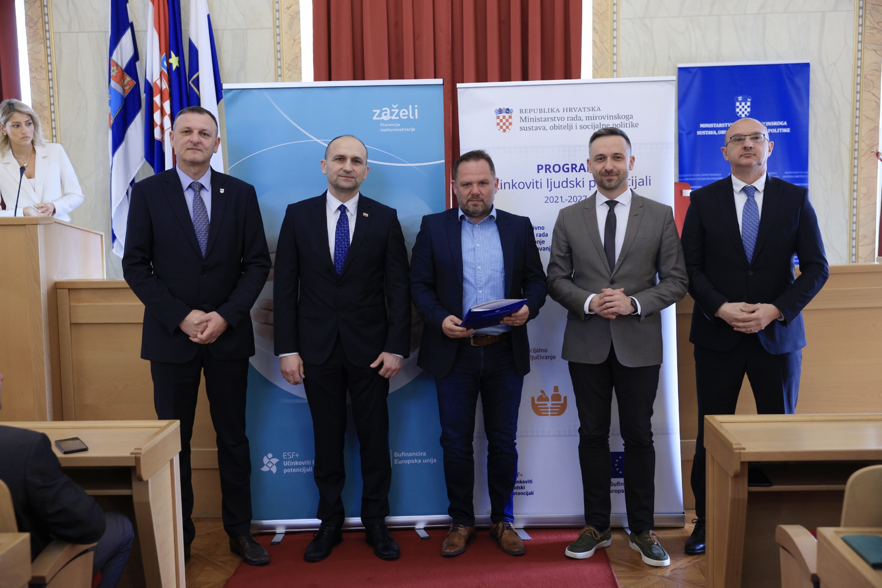 U okviru Poziva „Zaželi – prevencija institucionalizacije“ ministar rada, mirovinskoga sustava, obitelji i socijalne politike Marin Piletić danas je u Osijeku uručio ugovore o dodjeli bespovratnih sredstava predstavnicima 31 jedinice lokalne samouprave, udruga i institucija s područja Osječko-baranjske i Virovitičko-podravske županije. Ugovore je uručio u nazočnosti potpredsjednika Vlade i ministra obrane Ivana Anušića i ravnatelja Hrvatskog zavoda za zapošljavanje Ante Lončara, a sve nazočne pozdravio je obnašatelj dužnosti župana Osječko-baranjske županije Mato Lukić.
