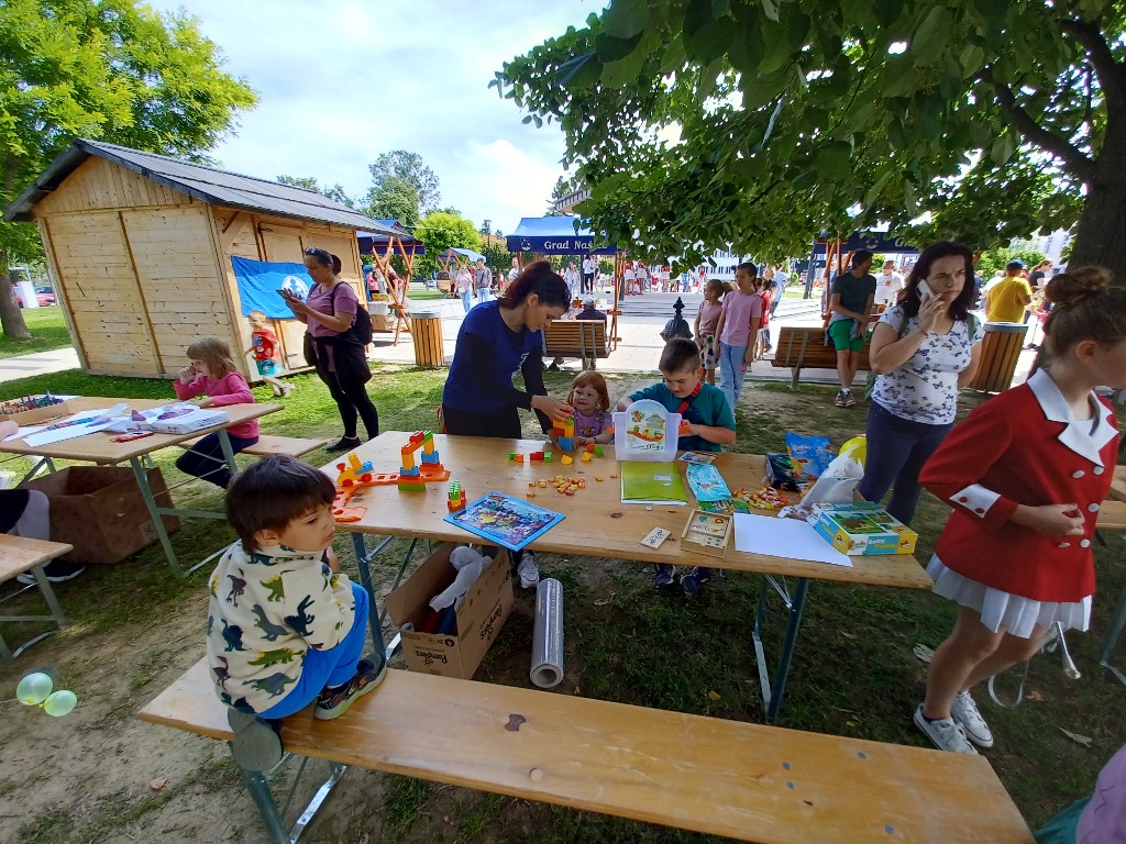 Kod sjenice na trgu, za najmlađe je radionice pod nazivom „Igre svuda oko nas” pripremilo Društvo „Naša djeca” Našice. Neke od igara koja djeca mogu zaigrati su „Čovječe, ne glupiraj se”, crtati na foliji oko drveća, sa sprejevima bojati papire i skakati u vreći.