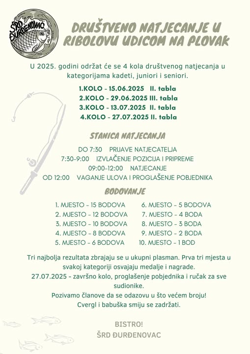 Sutra u Đurđenovcu društveno natjecanje u ribolovu udicom na plovak.
