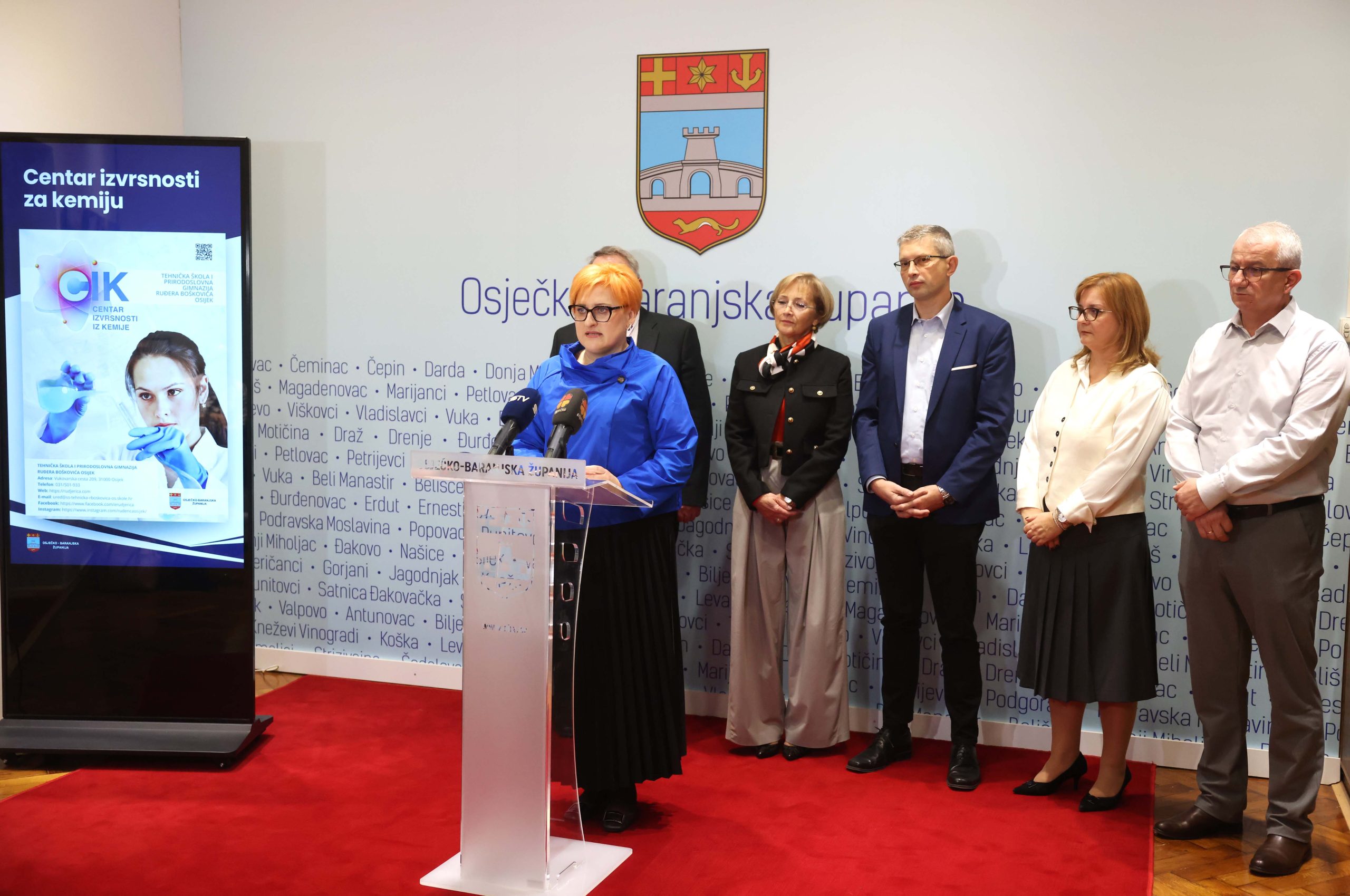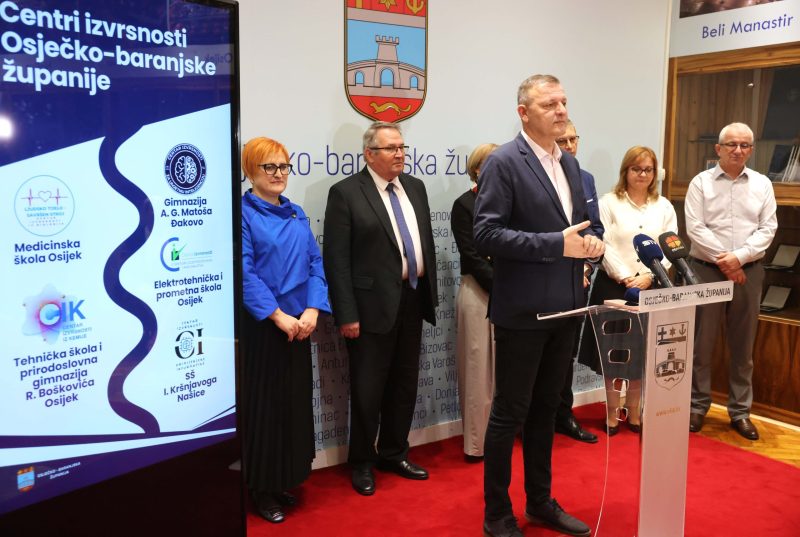 Danas su u Osječko-baranjskoj županiji predstavljeni novi centri izvrsnosti koji uskoro kreću s radom. Predstavljanju su nazočili ravnatelji škola u kojima će Centri djelovati, ravnatelj Gimnazije A.G. Matoša iz Đakova Zlatko Mrkić, ravnateljica Medicinske škole Osijek Sanja Dravinski, ravnatelj Srednje škole Isidora Kršnjavoga iz Našica Željko Filjak, ravnateljica Tehničke škole i prirodoslovne gimnazije Ruđera Boškovića iz Osijeka Nada Pitinac, zatim Antun Kovačić, ravnatelj Elektrotehničke i prometne škole iz Osijeka u kojoj se Centar izvrsnosti već provodi te pročelnica Upravnog odjela za obrazovanje i mlade Miranda Glavaš-Kul i obnašatelj dužnosti župana Osječko-baranjske županije Mato Lukić. Uz zahvalu pročelnici Glavaš-Kul i ravnateljima koji provode ili će provoditi programe u Centrima izvrsnosti, Lukić je naglasio kako Osječko-baranjska županija s posebnom pažnjom pristupa obrazovanju djece i mladih te kako sva djeca u potrebi imaju osigurane asistente u nastavi.
