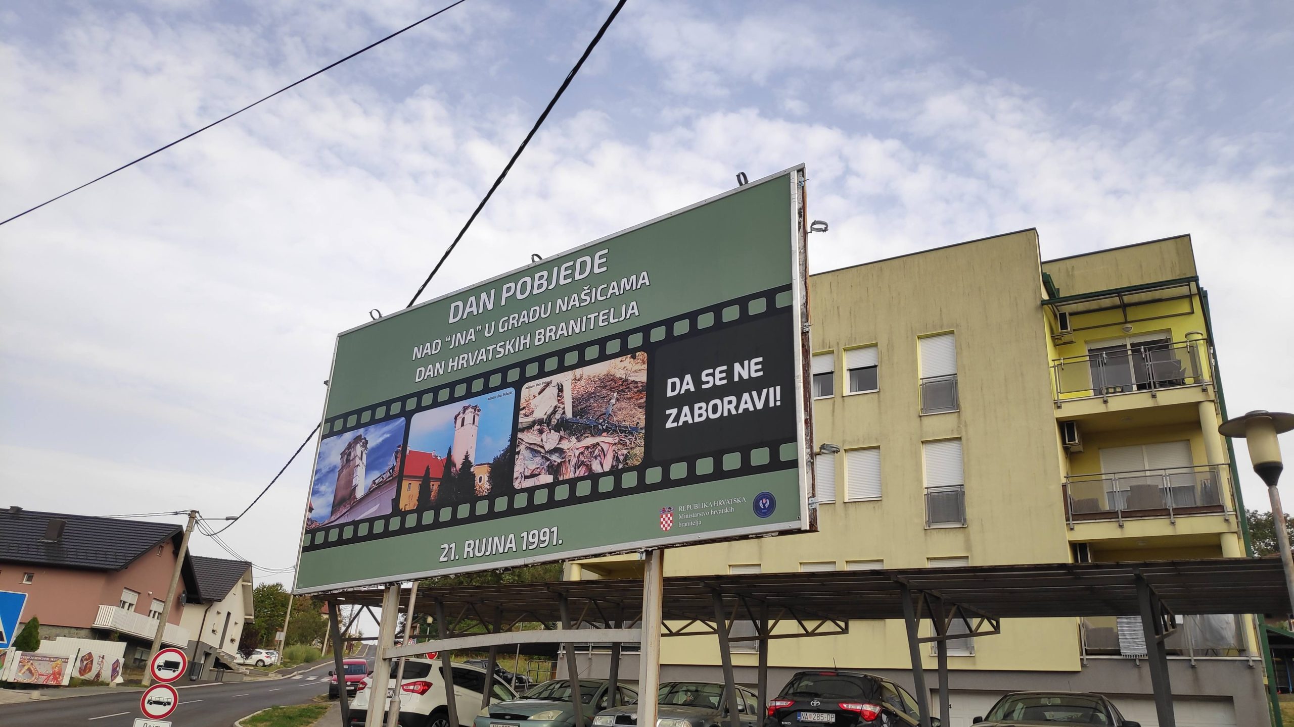 Povodom obilježavanja Dana pobjede nad JNA u gradu Našicama 21. rujna i Dana hrvatskih branitelja Grada Našica, Udruga udovica hrvatskih branitelja iz Domovinskog rata Našice, kao nositeljica projekta, inicirala je postavljanje jumbo plakata na kružnom toku kod našičke vojarne „da se nikada ne zaboravi”.
