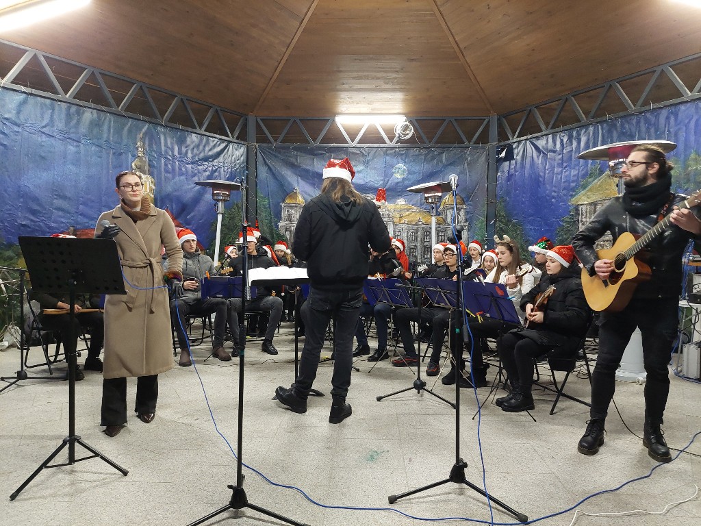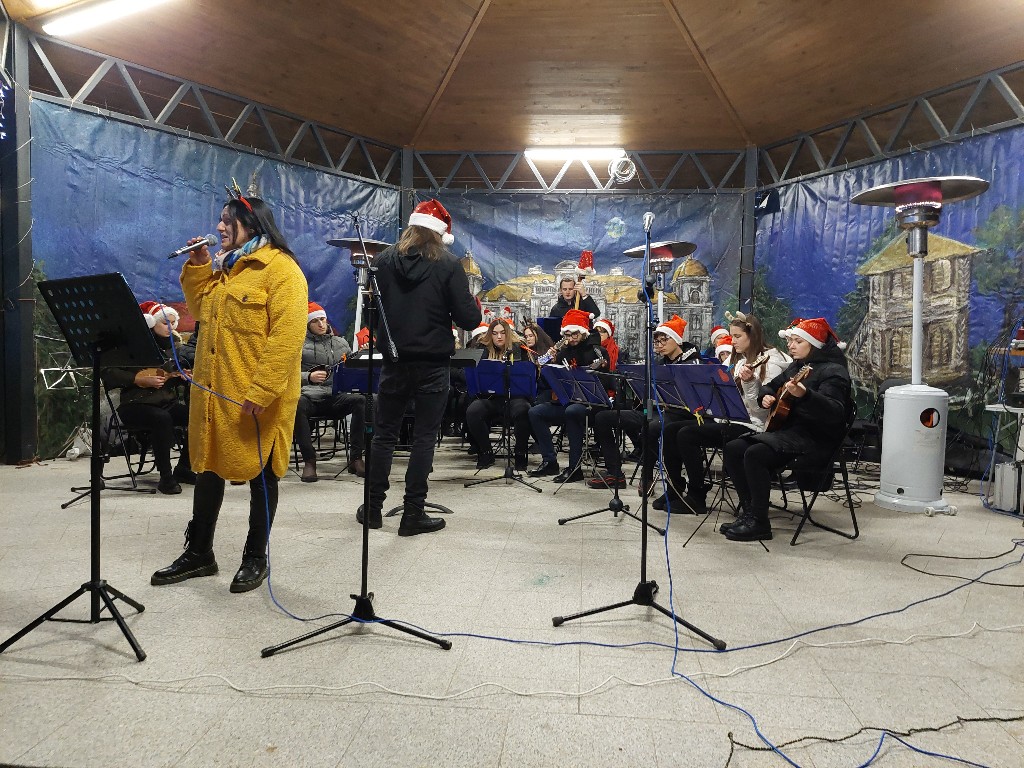 Današnja adventska večer završila je koncertom članova Tamburaškog društva “Dora Pejačević” pod ravnanjem prof. Deana Koprija.  Na repertoaru su bile klasične, ali i popularne pop i rock skladbe koje su,uz članove tamburaškog orkestra, pjesmom upotpunili Kristina Brkić, Helena Dadić i Mario Huj.  Koncert je završio popularnim Zvončićima.