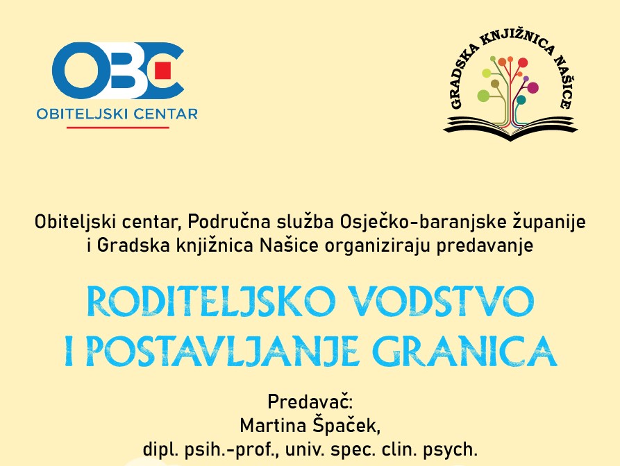Obiteljski centar Područna služba Osječko-baranjske županije i Gradska knjižnica Našice organiziraju predavanje na temu „Roditeljsko vodstvo i postavljanje granica”.