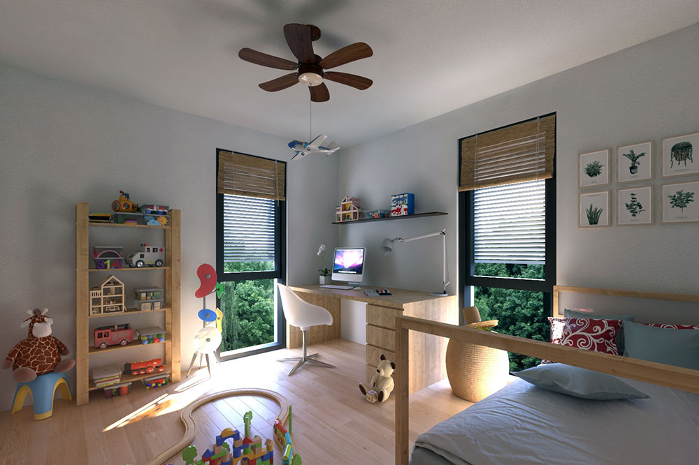 Stanovi na katovima imat će prostrane balkone, dok će stanovi u prizemlju imati izlaz u vlastiti vrt. Osim toga, u prizemlju će biti smješten i jedan poslovni prostor prema Ulici braće Radića na sjeveru. Središtem parcele prolazit će pješački put kojim se pristupa zgradama u prizemlju. Vrtovi i glavna pješačka os hortikulturno će biti uređeni visokom i niskom autohtonom vegetacijom. Prostor je namijenjen prvenstveno za pješake, kao brza veza između sjeverne i južne prometnice, ali i kao prostor za druženje, opuštanje i igru.