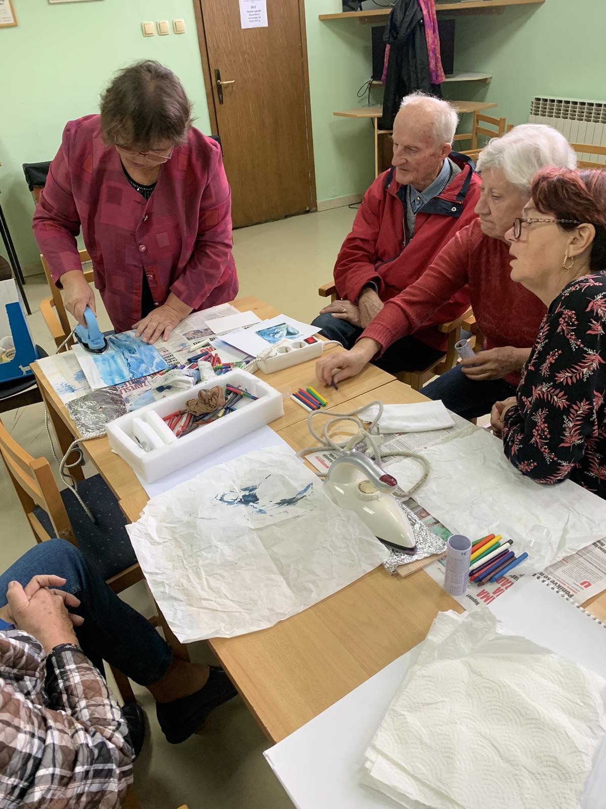 U prostorijama Gradske udruge umirovljenika Našice danas je održana likovna radionica. Voditeljica je bila Pavica Sajfert, a sudionicima radionice predstavila je slikarsku tehniku enkaustika. Polaznici radionice voštanim bojama slikali su uglavnom motive prirode.