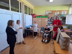 Predstavnici volonterske Udruge „Otvoreno srce“ Anđelko Cvijetović i Zlatko Kovač jučer su ravnateljici Osnovne škole kralja Tomislava Vlatki Zahirović i učiteljici Kristini Grgić predali novu nastavnu opremu koja će se koristiti za unapređenje nastave djece s posebnim potrebama.