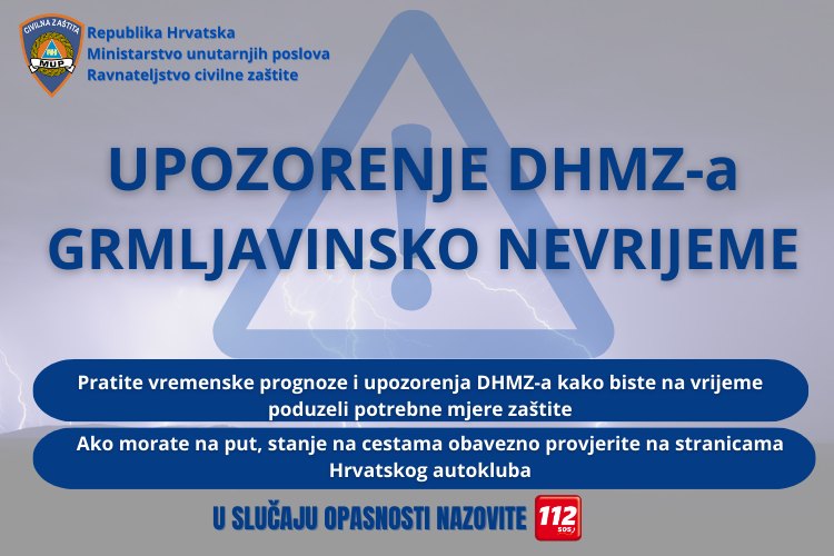 Danas je na snazi narančasto upozorenje DHMZ-a u regiji Osijek za grmljavinsko nevrijeme. Moguća su jača grmljavinska nevremena koja mogu prouzročiti veliku štetu i zaštitite se od munja. Moguća su i štećenja na imovini te drveću, lokalne bujične poplave, olujni udari vjetra i tuča. Mogući su prekidi u aktivnostima na otvorenom te u prometu – upozoravaju iz  DHMZ-a.