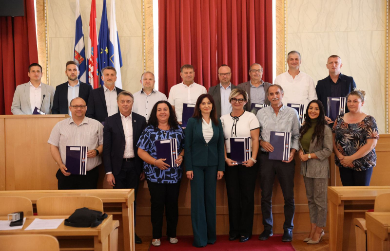 Županica Nataša Tramišak danas je predstavnicima 14 jedinica lokalne samouprave s područja Osječko-baranjske županije uručila ugovore o dodjeli pomoći za projekte društvene, komunalne i povezane infrastrukture.